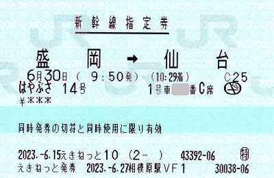| JR東日本/東北新幹線「はやぶさ」14号 盛岡 9:50 → 仙台 10:29 | ||||||||||||||
