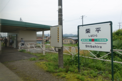 | 車窓 / 田園風景が広がる(十和田南→柴平) | 停車 / 柴平駅(7:27) | |||||||||||||