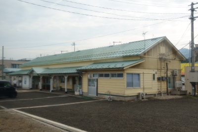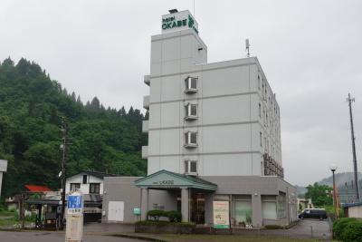 小出駅前は車で通ったことがあるが、駅を利用するのは初めてだ。小出駅は市街地から少し離れているので、駅周辺には何もない。調べておいた駅前の食堂ややはり営業していないようだ。雨足もだんだん強くなってきたので、駅前のホテルのチェックインした。 今日宿泊するホテルはごく普通のビジネスホテルだが、駅の目の前にあるので只見線の始発に乗るのには申し分ない。設備はこぐ普通だが、十分に快適だった。線路側の部屋だったので、駅を見下ろすことが出来て、遠くの眺めも悪くない。もう少し上層階だったらさらに眺めは良かっただろう。 |