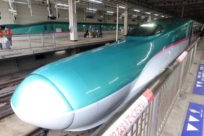 東北新幹線「はやぶさ」14号 3014B 新函館北斗発、東京行き JR東日本E5系新幹線電車 U-31編成(10両/新幹線総合車両センター) 盛岡→東京間は、「こまち14号」を併結 新幹線ホームに上がった時には既に「はやぶさ 14号」は到着していて、ちょうど「こまち 14号」が入線してくるところだった。急いで乗車した1号車の乗客は半分程度だった。 |