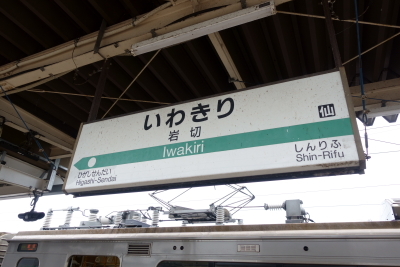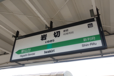 2駅、8分で利府支線との乗換駅の岩切に到着。東北本線と利府支線とはホームが違うので、連絡橋を使って移動する必要がある。 |