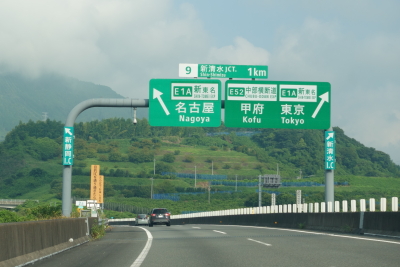 日曜日の朝なので東名高速は空いている。清水ジャンクションから新東名・清水連絡路に入る。清水ジャンクションから新清水ジャンクションまでは新東名だが、高速道路ナンバリングによる路線番号は、中部横断道と同じ「E52」が割り振られている。