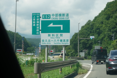 中部横断道は無料区間最後の出口の佐久北インターで一般道に降りる。この先小諸御影本線料金所までが通行料無料の新直轄区間だが、佐久北インター-小諸御影本線料金所間には出口が無いので、実質的にここが無料区間の最終出口となる。